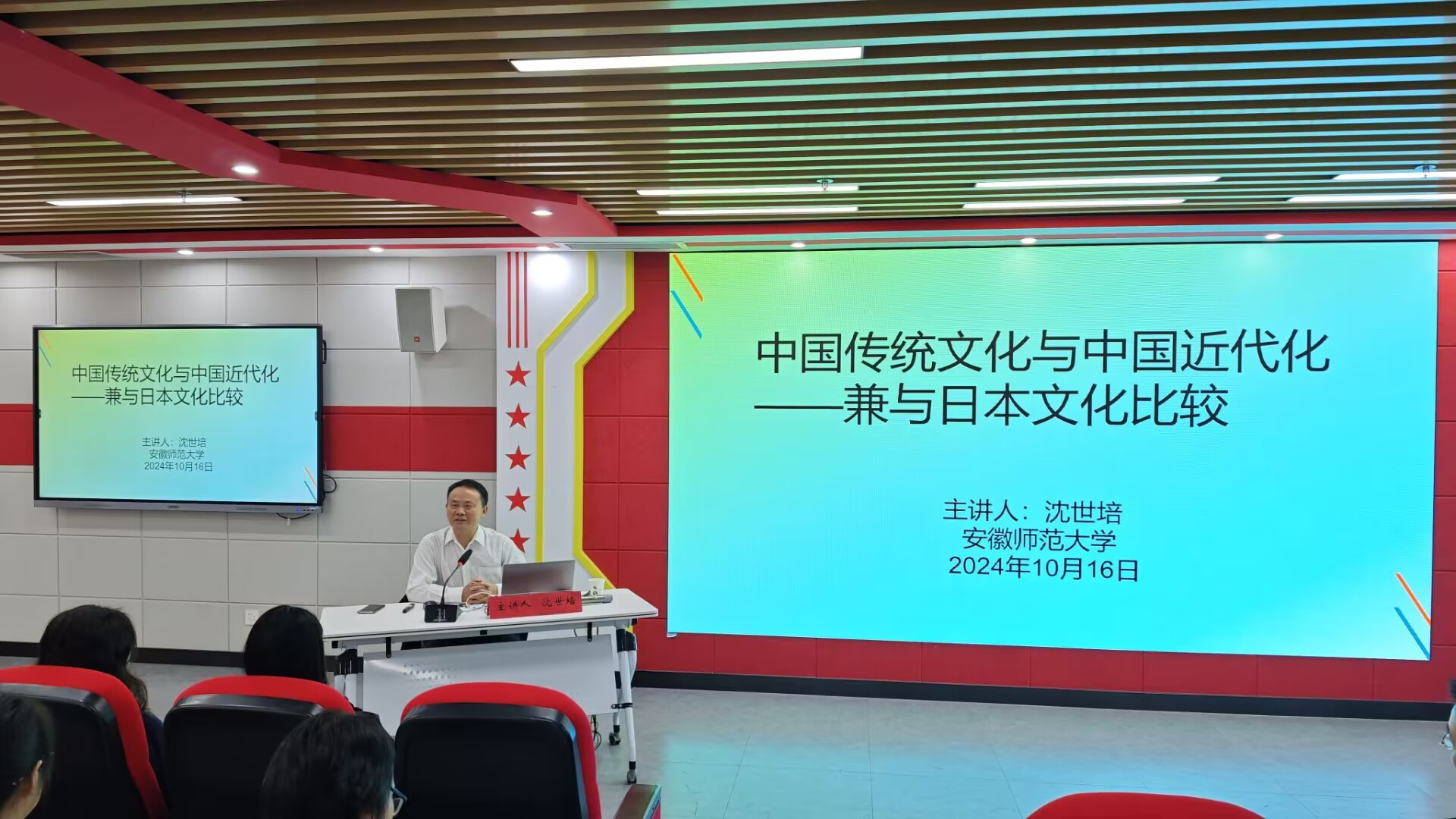 10月16日下午,安徽师范大学历史学院沈世培教授受邀为马克思主义学院全体研究生和教师作题为“中国传统文化与中国近代化”的学术报告。学院中国近现代史基本问题研究方向带头人方前移教授主持报告会。
