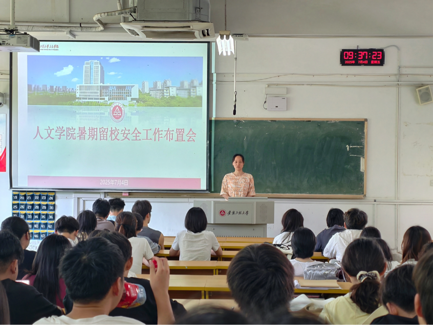 为保障暑期留校学生度过一个安全、充实、有意义的假期,74日,人文学院4j109召开暑期留校学生安全教育暨动员主题班会。学院党委副书记余本祺毕业班辅导员、学院留校学生参加活动