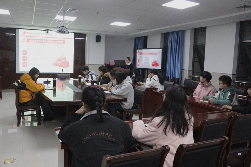 11月27日开始,各团支部、班级以“我与党的十九届五中全会”为主题举办团日活动,由团支书领学党的十九届五中全会精神,认真学习习近平总书记在全会上的重要讲话精神和全会公报、规划《建议》等重要文件,结合各类权威学习材料,准确把握全会的精神实质、重大部署、深刻内涵,自觉用全会精神武装头脑、指导实践、推动学习工作。