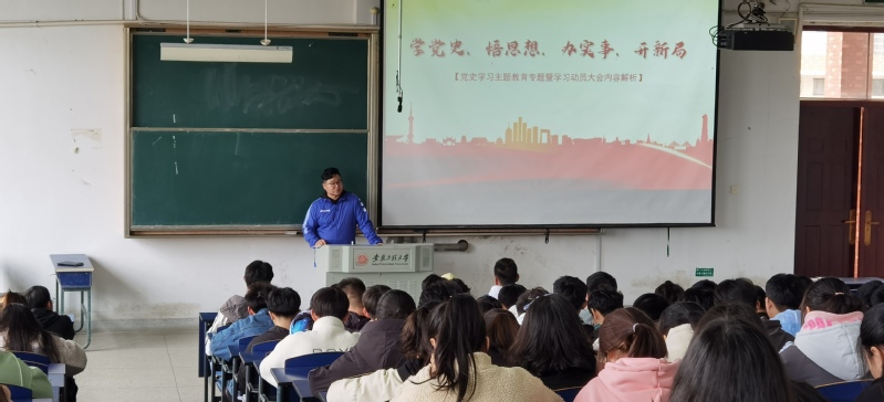4月13日中午学院团委邀请校青年讲师团成员段文为学院团支书班长做了“学党史、强信念、跟党走”的主题宣讲。4月20日中午学院团委邀请校青年讲师团成员王子航同学为团委学生会的成员做了“青春献礼百年”的团课。两次团课分别从党的百年历程、党的初心使命、党的先进性等方面展开,阐述了党的一百年是矢志践行初心使命的一百年,是筚路蓝缕奠基立业的一百年,是创造辉煌开辟未来的一百年,号召大家学党史,在党史中找寻“大道”,将个人发展与学校发展乃至国家发展结合在一起,树立远大理想,成为新时代的接班人,通过两次团课的学习让团学骨干们更深层透彻地感悟党的伟大历史。