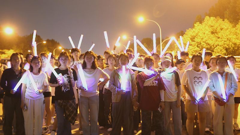 晚七点,同学们手持荧光棒、佩戴荧光手环,汇聚于学校南大门起点处;在微凉的晚风中,同学们彼此鼓励,并肩奔跑,将秋夜的校园装点成一片流动的光海,欢声笑语不绝于耳。